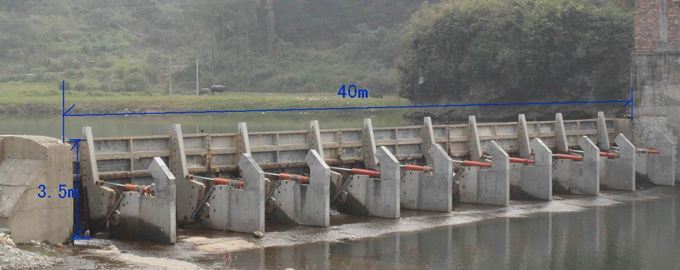 自動翻板壩,洪水漫頂20cm后,便自動翻板,河道行洪順通,對保護(hù)農(nóng)田將起到很大作用.