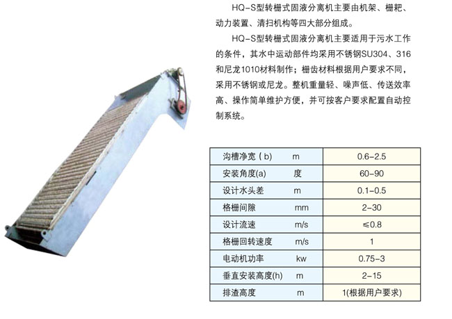 HQ-S型轉(zhuǎn)柵式固液分離機(jī)