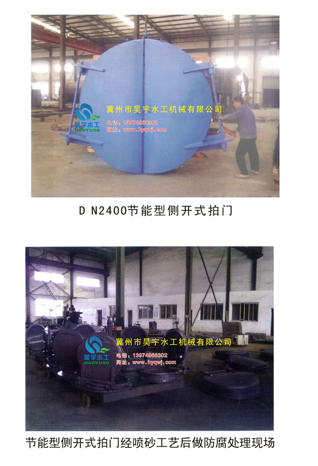 節(jié)能型側(cè)翻式拍門運行中的兩大關鍵點是:止水密封功能和啟閉靈活度。拍門的止水裝置為結(jié)構(gòu)型門葉,密封裝置為橡膠;門葉必須具有均勻的受力設計(如:弧度、扇形加強筋),而密封橡膠中以丁晴橡膠最為理想,具有耐沖擊、抗老化和耐腐蝕的功能。